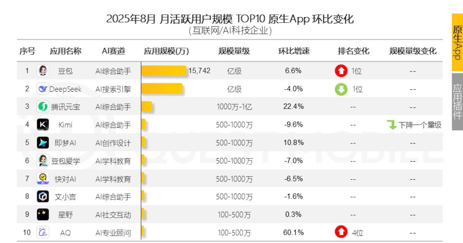 如今,字节越过完成了逆袭。阐述中国数据就业公司QuestMobile的统计,松抄本年8月,豆包再行成为中国最受接待的AI应用,月活跃用户越过1.57亿。而DeepSeek月活跃用户为1.43亿,跌至第二位。同月,风险投资公司a16z也将豆包评为世界第四大最受接待的生成式AI应用,仅次于ChatGPT、谷歌Gemini以及AI Gallery。